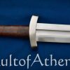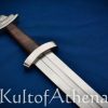 The sword has always been a highly personalized weapons, but perhaps never more so than the Viking Age. A great sword was a spectacular investment in money and materials – treasured heirlooms, good blades were passed from father to son. Many swords were given names and personalities – such as Leg Biter Life-Taker and Byrnie-Biter. Masterly crafted swords were so superior to more crudely constructed blades that it was easy to believe that the typically secretive smith who made them had imbued his work with magic, making it quick of draw, fast to strike and holding a keener edge. The success a excellent weapon brought a skilled warrior brought life into the legends they wove around their named blades.