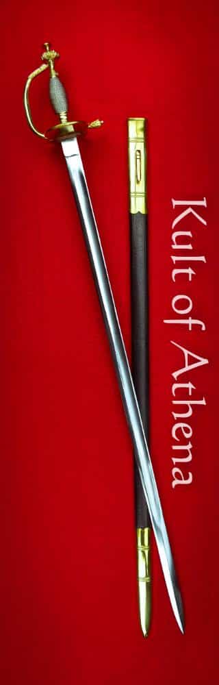 When the British Army standardized the swords to be carried by infantry officers in 1796 this is the sword they settled on; a spadroon-like cut-and-thrust sword with simple, but elegant Georgian styling that hearkened back to the Smallswords carried by gentlemen in earlier times. In just four years following, the blade was at the hip of practically all British Line Infantry Officers. Regardless of the standardization of form, the blades varied in their width and in their engraved decoration. Though widespread, it was not regarded as a good combat blade despite being used through the entirety of Britains contests with France in the Napoleonic Era. It would not be officially replaced until 1822 by the more elaborate Gothic-Hilted sword and before then many officers had opted to acquire the 1803 Pattern saber instead.
