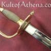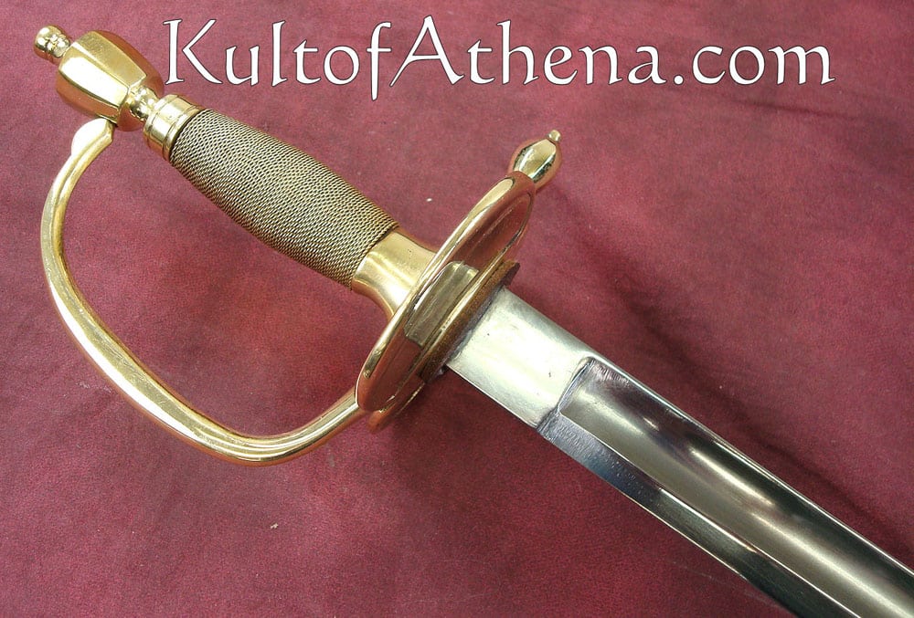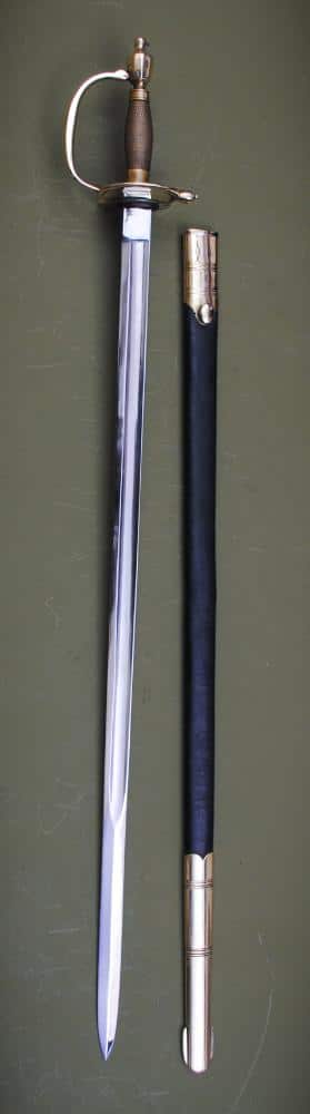 When Britain standardized the swords to be carried by regimental officers, it also standardized a simpler, cheaper version of the sword that was to be worn by the sergeants and their accompanying drum and fife. Omitting the silver detailing and blade engraving, these all-brass hilted swords were in the form required and at a price befitting the wages of the men carrying them.