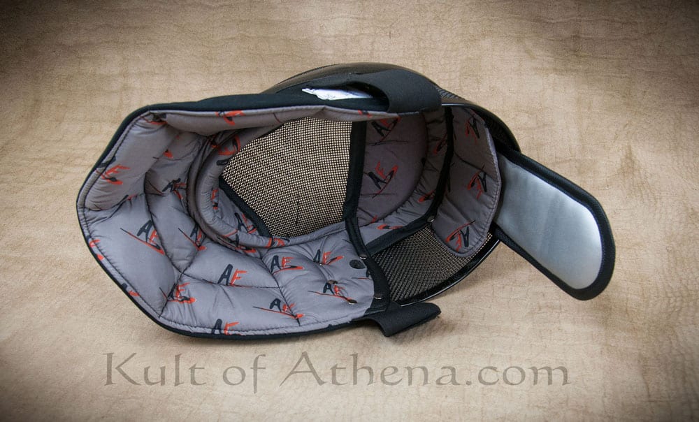 Looks pretty good I’ve only used it a hand full of times so far, but it works really well against the Cold Steel Hand and a half training swords. MAKE SURE TO MEASURE YOUR HEAD BEFORE ORDERING! I’m a bit smaller than normal, but I ended up getting a large based on the recommended size and I am really glad I did. The large slides just a little bit on my head but not enough to obstruct vision or come off. My friend got the medium and it is to small for my head.