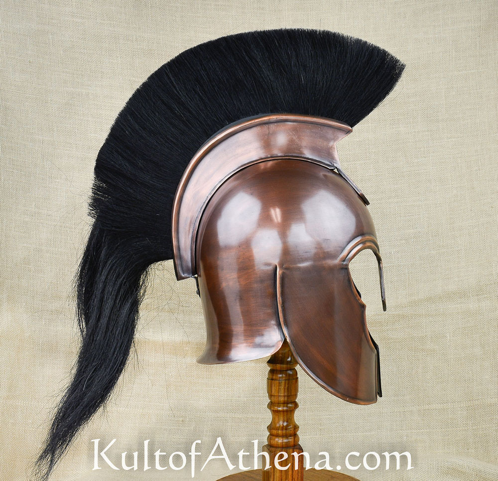 Similar to the one worn by Brad Pitt in the movie Troy, the Achilles Trojan War Helm feature classic Greek styling, a bronze finish and black horse hair crest. Includes padded liner.