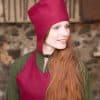This unique wool blend cap looks right at home atop the brow of the Medieval alchemist, sorcerer, physician or scholar. It is made from wool blend fabric which is 74% Wool, 15% Polyester, 7% Polyamids and 4% misc. Natural Fibres. From Burgschneider of Germany.