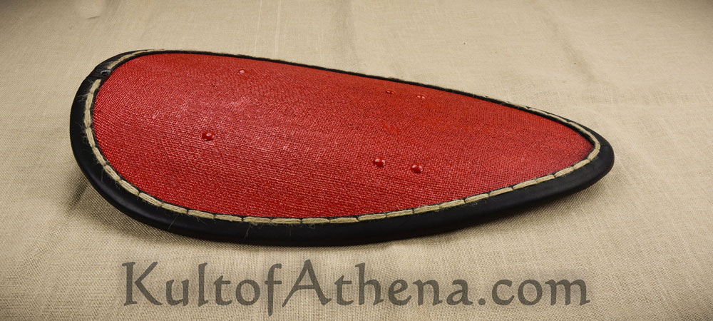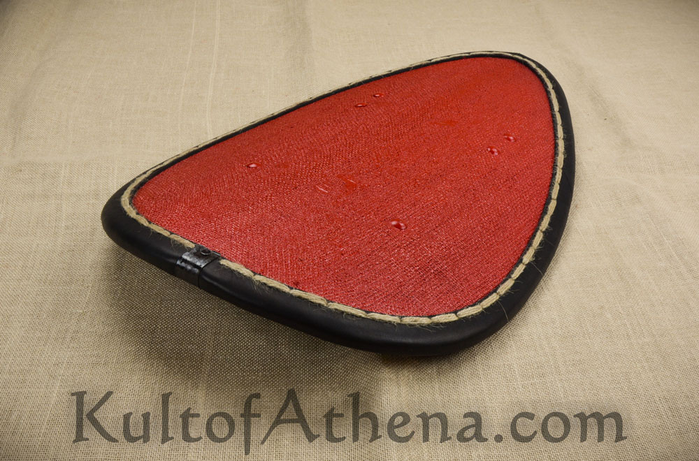 This heavy duty shield is built for hard-hitting HMB sport combat; this shield from Age of Craft is an excellent choice when a truly stout and long-lasting shield is needed for heavy combat. It is made from thick wood and its rounded edges are rimmed in thick leather which is secured with substantial cord stitching. The face of the shield is bound with a thick textile before being painted. It is sized for HMB Sport Fighting.