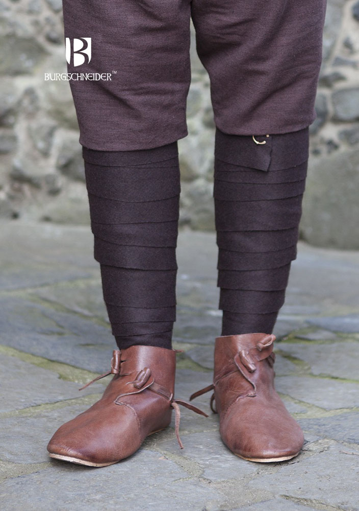 A staple piece of gear for late Roman legionaries, Vikings, Normans and more, legwraps have been in use since antiquity. This humble but universally effective strip of elongated cloth has also been known as winingas, puttees, or wickelbander. They serve to bind the lower leg and lend support to ankles, shins and calves whilst giving protection from thorny brush and undergrowth. They also keep dirt and debris out of footwear and legwear.