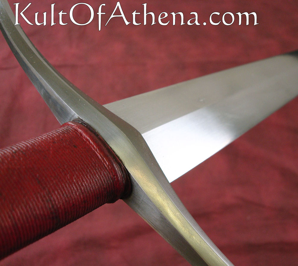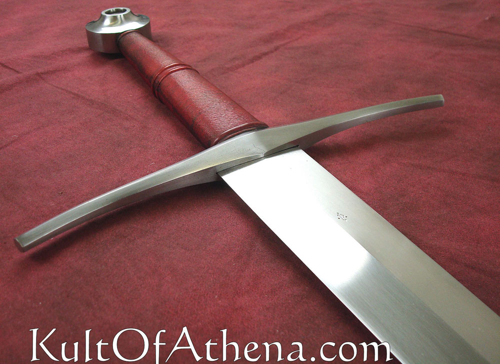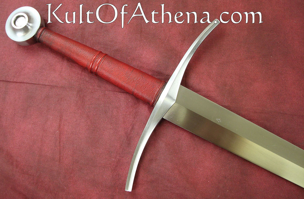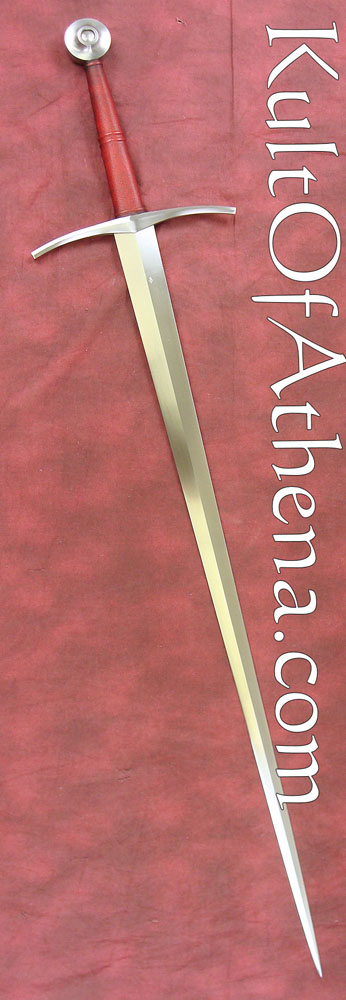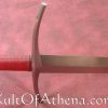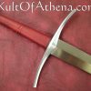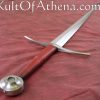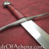 This sword, by Albion Arms, would look right at home in the hands of a knight or professional soldier of either side. It is a bastard sword – A sword that came into its own when armor had had advanced enough that men felt confident enough to abandon their shields and concentrate on offense. This sword is well balanced – it can be wielded one-handed with little difficulty, though a two-handed grip imparts agility and leverage that cannot be gained single-handedly. A strongly tapering blade facilitates thrusting technique designed to split chainmail link asunder and find the weak joints between the armor of the time.