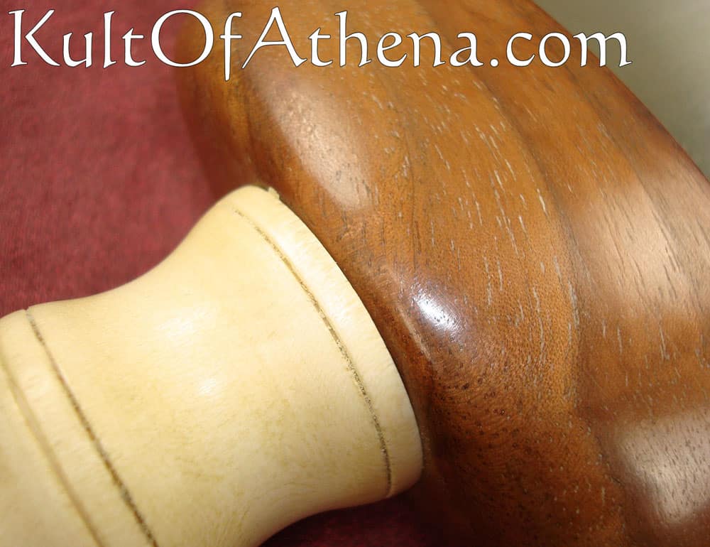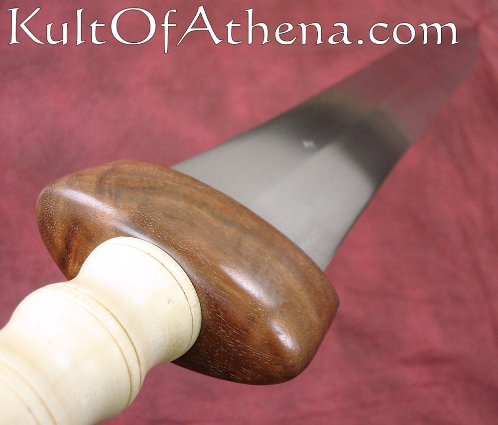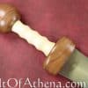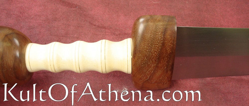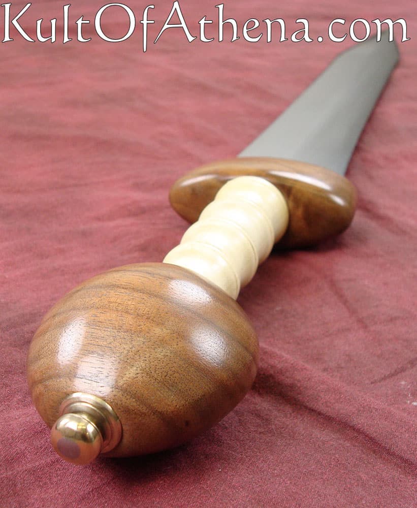 The Albion Next Generation Aquilifer Roman Gladius is a beutiful example of the Fulham pattern. The blade is hand-ground from high carbon steel to a fine satin finish, sharpened and heat-treated by hand in the Albion Forge Shop. The guard and pommel are hand-crafted of walnut, the grip turned from holly, and the inset guard plate and pommel nut are of bronze.