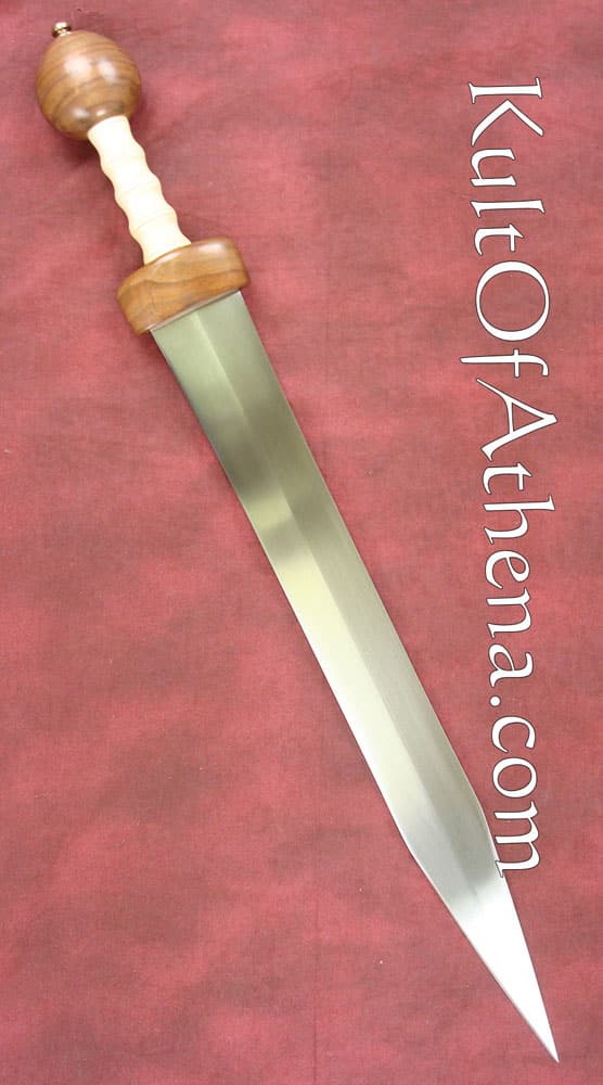 The Roman Legions were renowned for their brutal, efficient use of the short sword and over the centuries the style of short sword changed as tactics changed or were refined. Beginning with the ”gladius Hispaniensis” (based on a Celt-Iberian leaf-bladed short sword), over time the sword became shorter and broader (the Mainz and Fulham patterns) and culminated in the ”Pompeii” style stabbing sword.