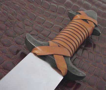 This Albion Conan dagger features antiqued cast bronze fittings, hand leather-wrapped grip, and a blade of high carbon steel, which is heat-treated, ground and polished by hand.