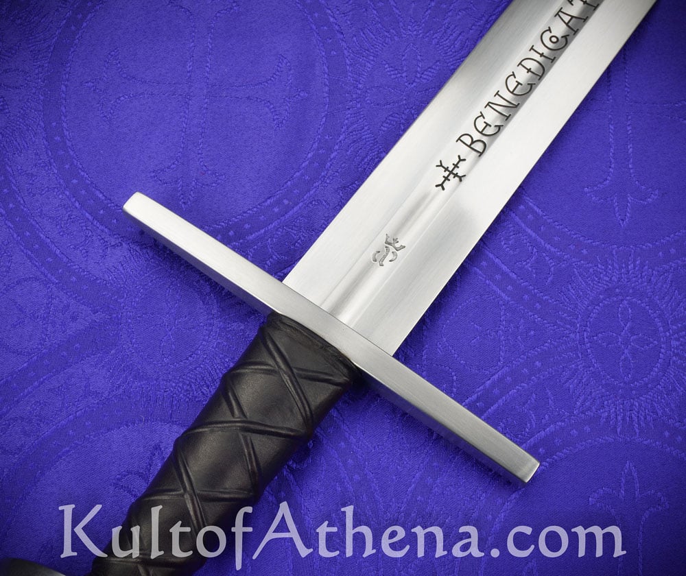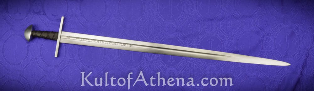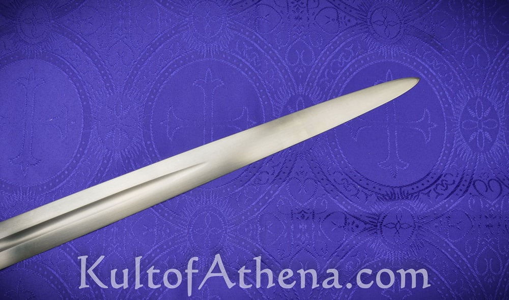 Albions recreation of this sword has a blade that has been hand ground to shape and tempered for the right mix of flexibility and edge retention and finished to a satin polish. The crossguard and pommel are of steel and the grip is wood covered with tight leather over cord.