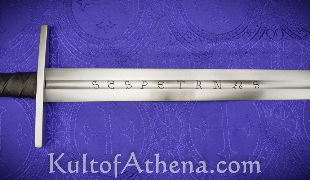 This would have, no doubt been a very expensive sword to create as the inscriptions and blade quality indicate, but its owner did not make a gaudy weapon emphasizing his wealth, but a relatively simple, elegant sword that belies a adherence to duty and to the defense of the Church.