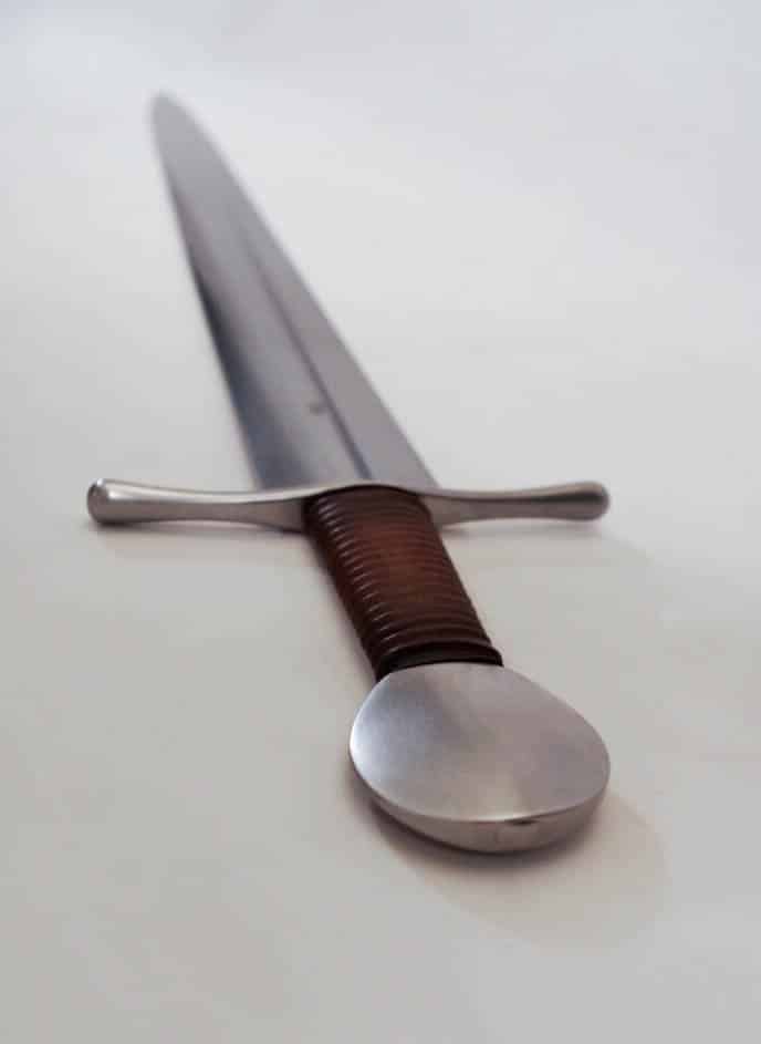 A 2 lb sword arming sword that is the heaviest 2 lb sword I’ve ever used – and that’s not a criticism. This beauty was designed for heavy strikes, not nimble dueling, and every bit of it reinforces that feeling. It’s a type of sword – XIa – you rarely see in the reproduction market, and it gives a lot of insight into how this kind of sword handled. While the one I reviewed could have used a slightly better polishing done on the edge and pommel, it’s still a phenomenal sword.