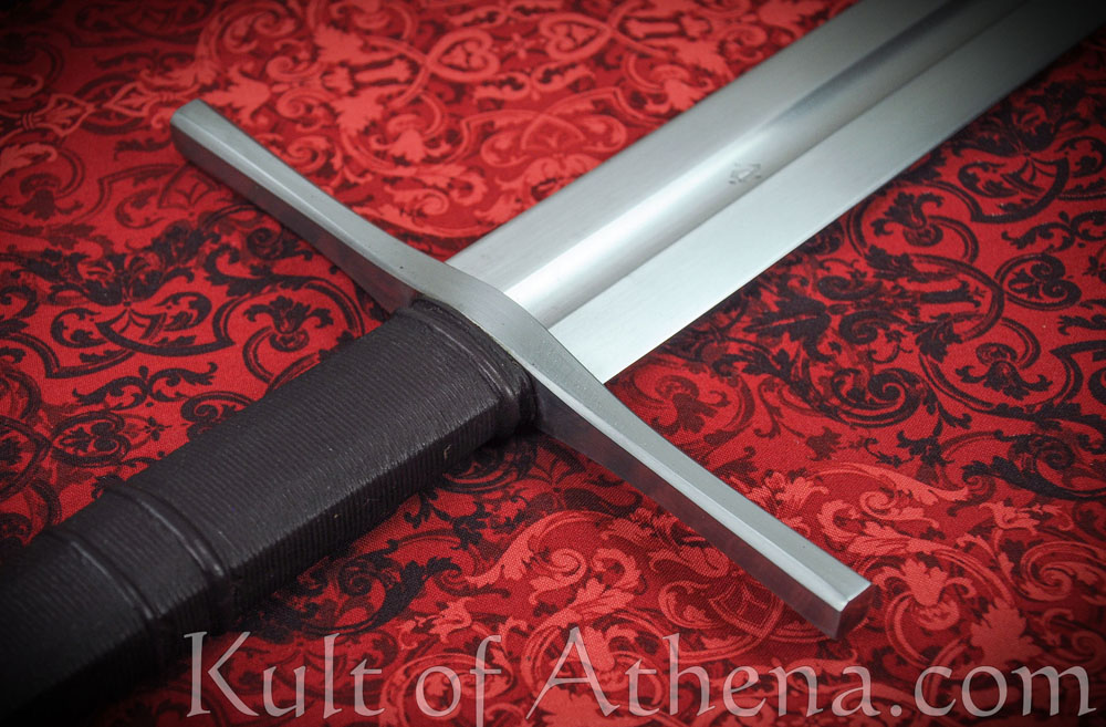 The hilt of this sword was inspired by an original found hidden inside a wall in a medieval-era home in Linz, Austria, dated from the early to mid 14th century. The original sword is pictured as XIIIa.5 in Ewart Oakeshott's Records of the Medieval Sword. To make it even more of a classic XIIIa warsword, Albion has added a rivet block and lengthened the grip. The grip has eight planes and 2 risers in the middle as a support for the hand. Mounted in a hilt with a long grip like this, the blade becomes very agile and quick, yet capable of delivering devastating cutting blows.