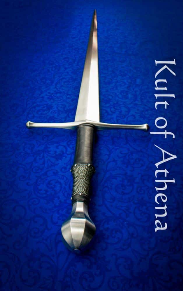 Albion’s Talhoffer Bastard sword features a sharpened high carbon steel blade heat-treated to a fine temper in the Albion Forge Shop. The grip is of stabilized birch, wrapped with cord and covered with the highest grade vegetable-tanned calfskin. The guard and pommel are solid steel.