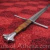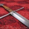 The Regent has a hand ground high carbon steel blade is tempered for flexibility and edge retention. The crossguard and pommel are cast from mild steel. The grip is cord-wrapped wood fitted over with tight leather.