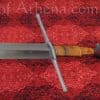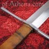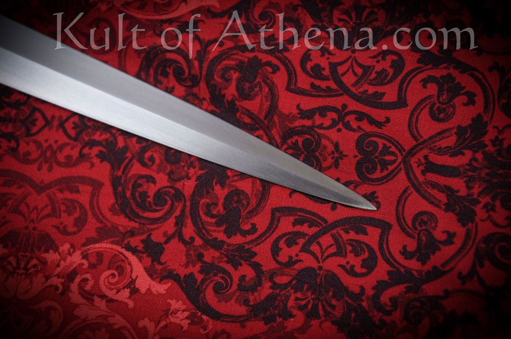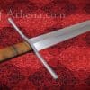 The Regent is inspired by the beautiful longswords favored in areas of Germanic influence during the mid to late 15th century. It has a long hollow ground blade with edges that arc gracefully to an acute point. The raised spine gives this blade a good stiffness for its weight while the keen edges are crisp and well defined. The blade pairs efficient width at the cutting section with a strong awl-shaped point.