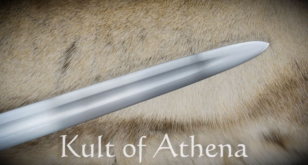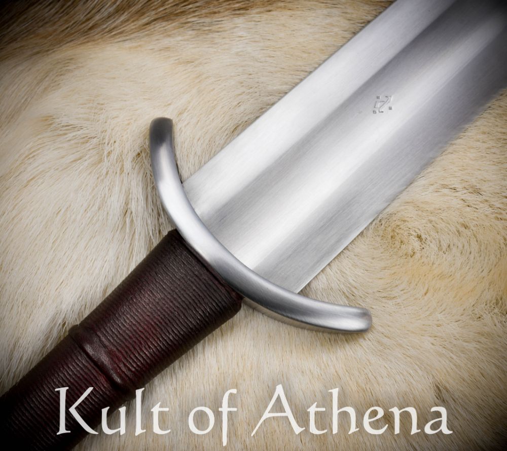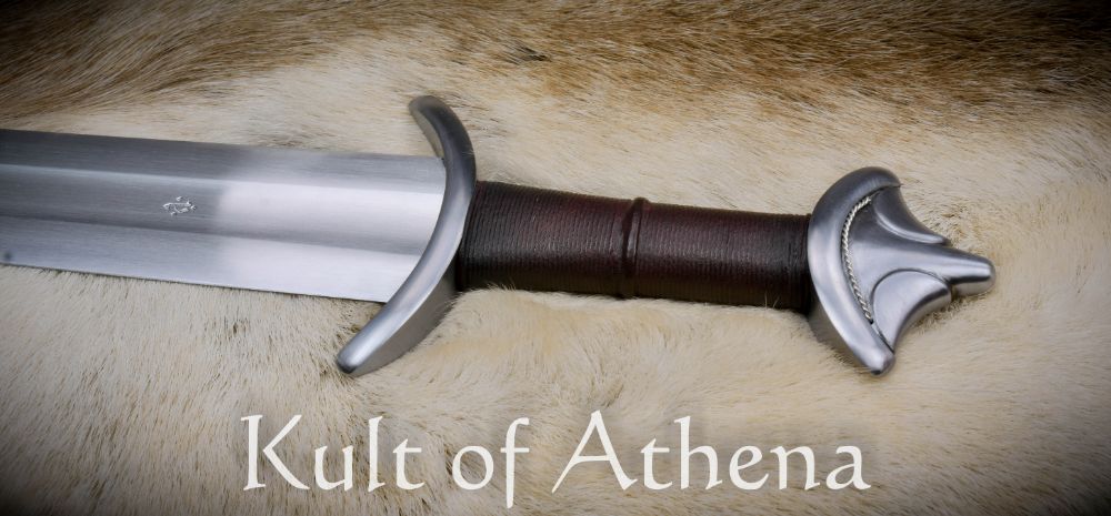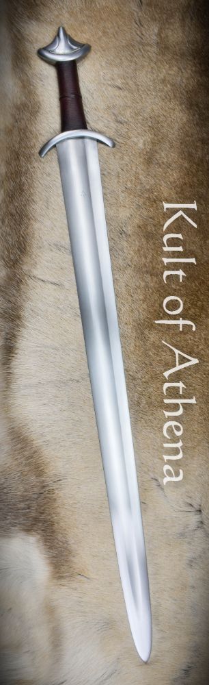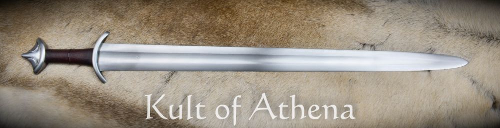 A Viking sword of a Noble I Purchased an Albion Ghaddhjalt sword last year and after using it and falling in love with it i decided to purchase another. After much deliberation i decided to Purchase the ‘Thegn” It is misleading to look at the dimensions thinking that this is in anyway a “small” sword. It is light, slightly over 2 pounds but the sword moves wickedly fast. The blade is fairly broad and reasonably stiff but flexes nicely. It sings through water bottles and spaghetti Squash’s. it will reward good technique with excellent cutting results. It can be wielded for long periods of time because it is lighter. It has this presence that suggests brutally fast usage. As a side arm this would be a great choice. After your spear broke or ax was rendered useless having this on your side would be a great comfort. It seems to have a lot of ‘heart’ that you feel when you hold it. Albion did a GREAT job on this particular sword. The Blade is Very sharp and the fit and finish excellent. Its not a inexpensive sword. The quality is there. I think that if people handled one they would really like it and understand what it is all about. Also Kult of Athena is a great place to do business and i feel like they really care . Thanks
