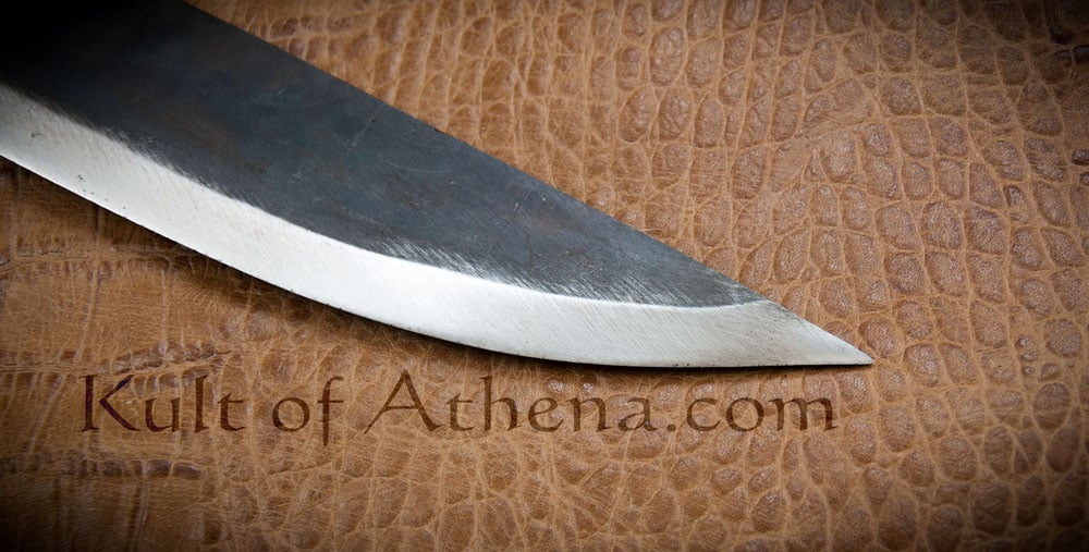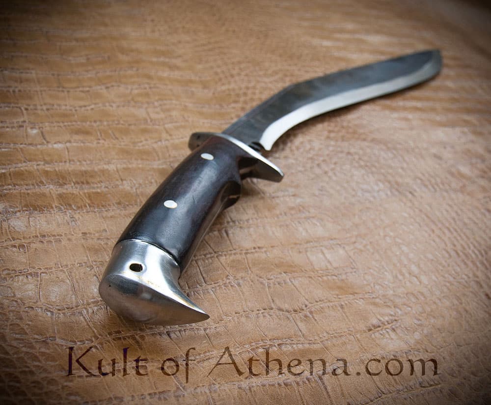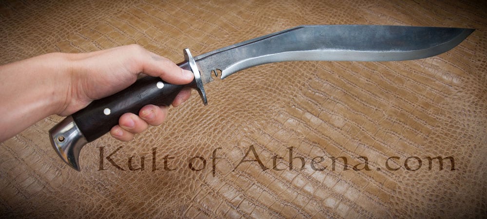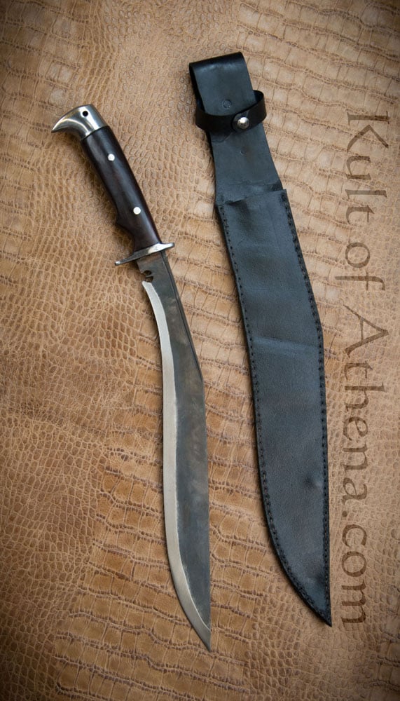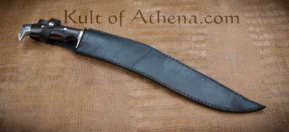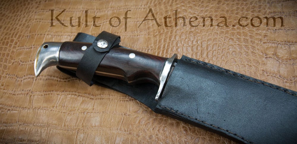 The Kukri comes with a stitched sheath of leather with an integrated belt loop and buttoned retention strap.