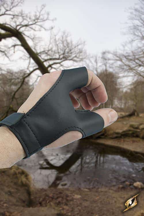 Epic Armourys Hand Protection is designed to protect an archer from the bowstring and arrow during use. Handmade from durable chrome-tanned leather, this glove covers the index finger to the thumb of the left-hand. When used on the bow-hand, this glove will fit around the bow and cover the exposed skin that would otherwise risk injury from arrow feathers or recoiling bowstrings.