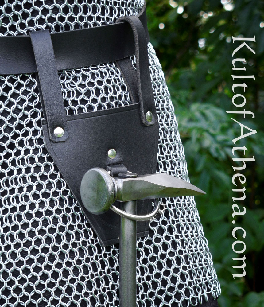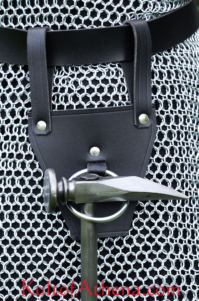 This ring-frog of thick leather is fitted with a large steel ring by which to hang your axe or mace at your side from your belt.