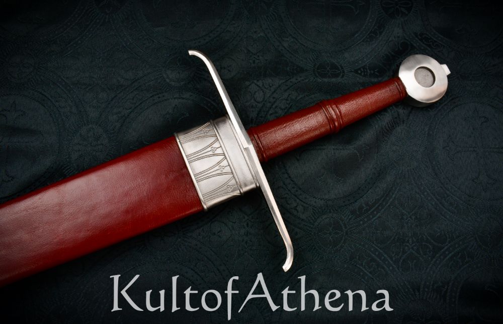 The sword is paired with a tough wooden scabbard which is tightly bound in well-stitched red leather and completed with a stainless steel chape and highly detailed and medieval gothic-styled stainless steel locket.