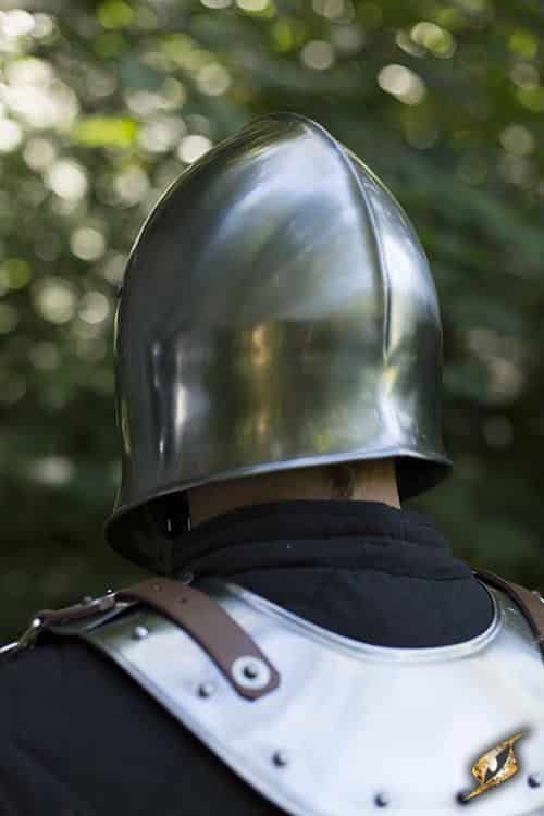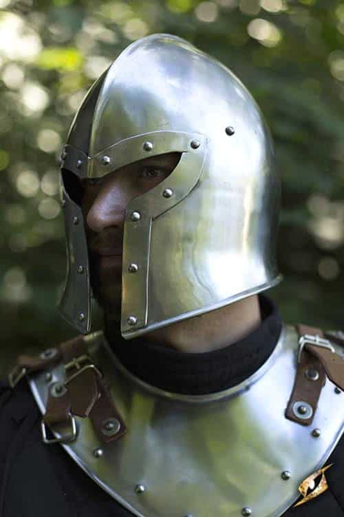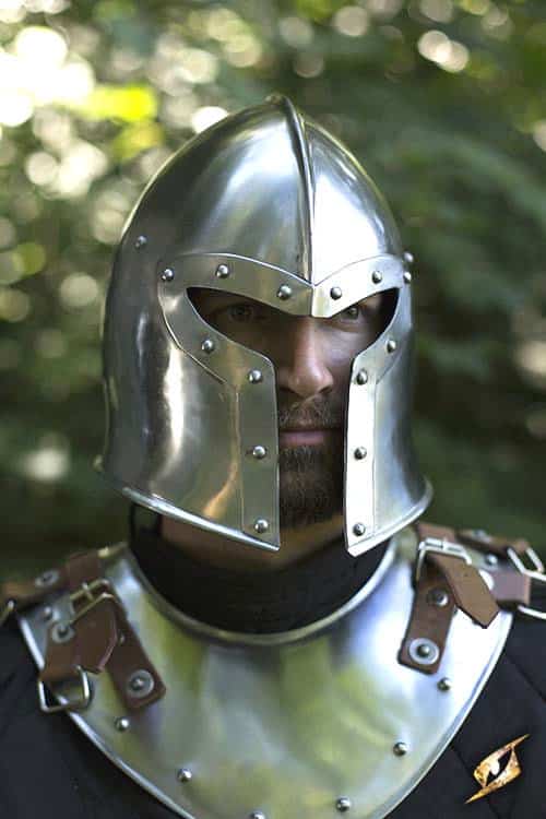 This is a very nice helm for the money. Very nice. I ordered the medium, because it fits my measurement closer than the large. It fits small on me, but not enough to return it. The edges where a little rough, so I sanded them down. Easy fix. I would not take this as a “battle ready” piece of armour, but it is worth picking up. It comes with a glued in leather liner and chin strap. Both are adjustable. I’m not a larper, but this helm seems more suited for that purpose (Epic Armoury…well, duh!). Well worth the purchase.