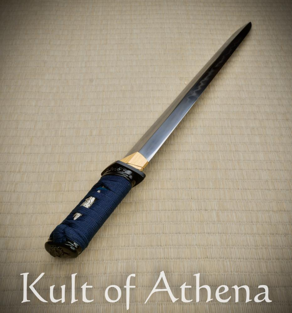 Following on the success of the Ninjato Chokuto, BattleBlades wanted to release a linked Wakizashi and Tanto pair to both complement the sword or to be fine quality standout pieces all on their own. This night-blue Wakizashi has been carefully balanced on both its blade and tang to ensure it is blazingly fast in the hand and a powerful striker with its wide cutting blade and reinforced puncturing tip. BattleBlades looked for inspiration from straight bladed Tsurugi swords of the same era as the Chokuto, though the Tsurugi design itself is quite ancient in Japan and surviving bronze blade Tsurugi that are several milennia old! With that form as a basis they created here a stealthy and strong-striking Wakizashi with a blade in the ancient Tsurugi form.