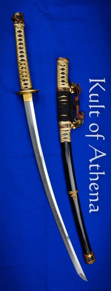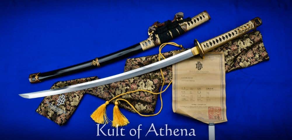 The ancestor of the Katana, the deeply-curved Tachi is recreated here by BattleBlades in lavish detail and embellishment fitting for a sword that is the ancestor of the Katana and a sword worn and borne into battle by distinguished elite Samurai cavalry; a sword that would be associated by warrior nobles and their closest personal retinues who were to stand apart in their arms from common Katana. BattleBlades has pulled out all the stops to do full justice to the ancient Tachi sword by matching a premium blade with sumptuous koshirae fittings of outstanding quality. The blade is crafted from forge-folded 1095 high carbon steel which was made into separate panels and components and melded together into a laminated blade in the Honsanmai style by a very skilled swordsmith.