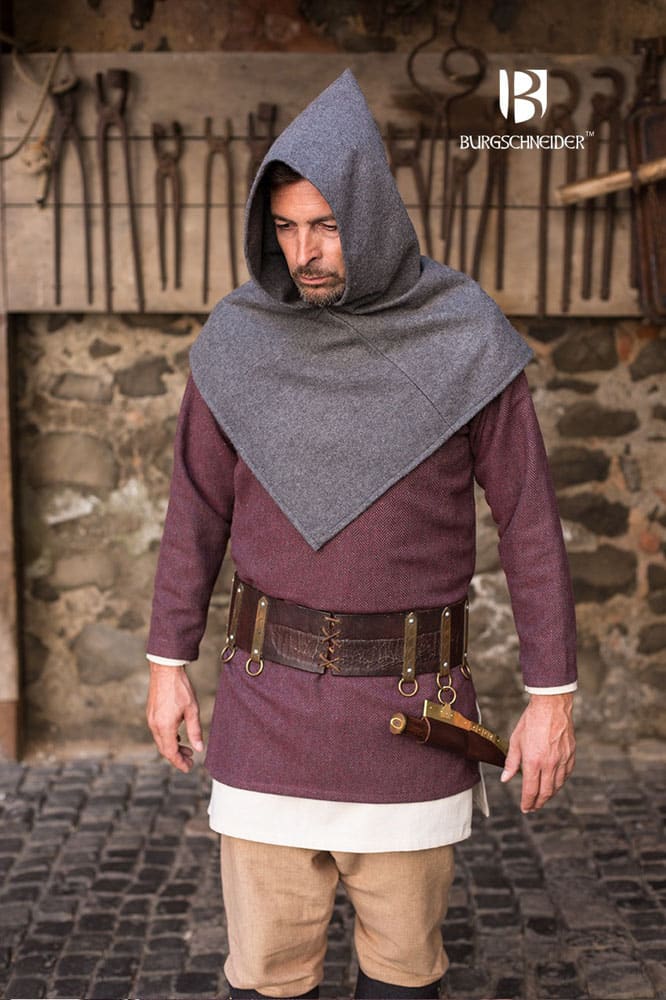 This Viking Cowl is based on the Skjoldehamn Gugel which was found in a 11th century Viking burial tomb. The encompassing hood and shoulder cowl serves its bearer well against the elements encountered in the rough day to day life of a Viking.