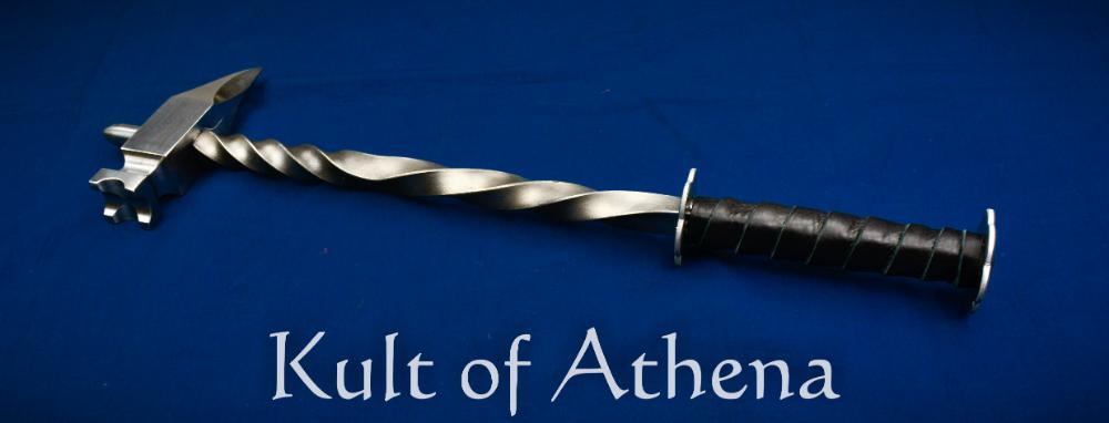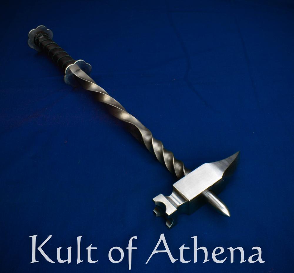 This Gothic-styled Knightly Warhammer has been embellished with careful decorative filework and etched decoration, and though this makes it an artful piece from Baltimore Knife and Sword, it is no less functional as a weapon. It is robustly constructed from steel and is very capable of smashing or piercing a target with ease. The grip rondels have been welded to the twisted steel shaft to ensure that they are sturdy and secure and grip of supple leather completes this masterfully-crafted medieval weapon.