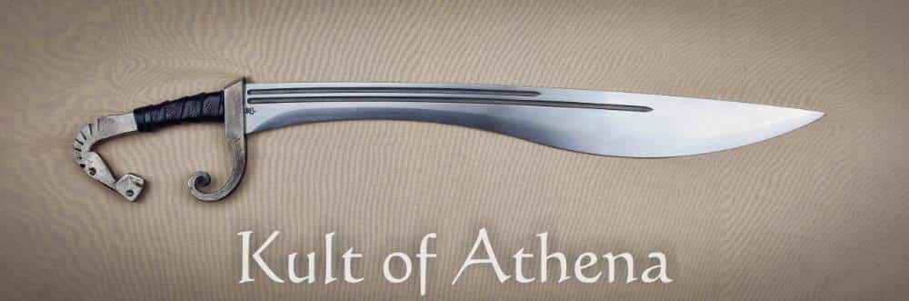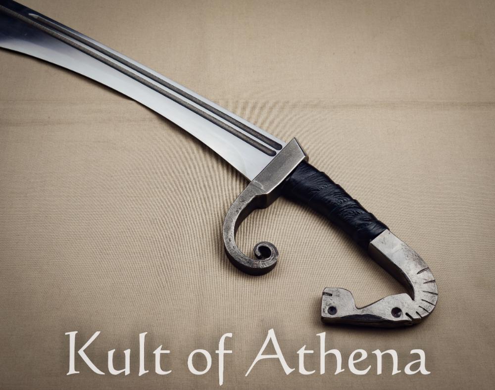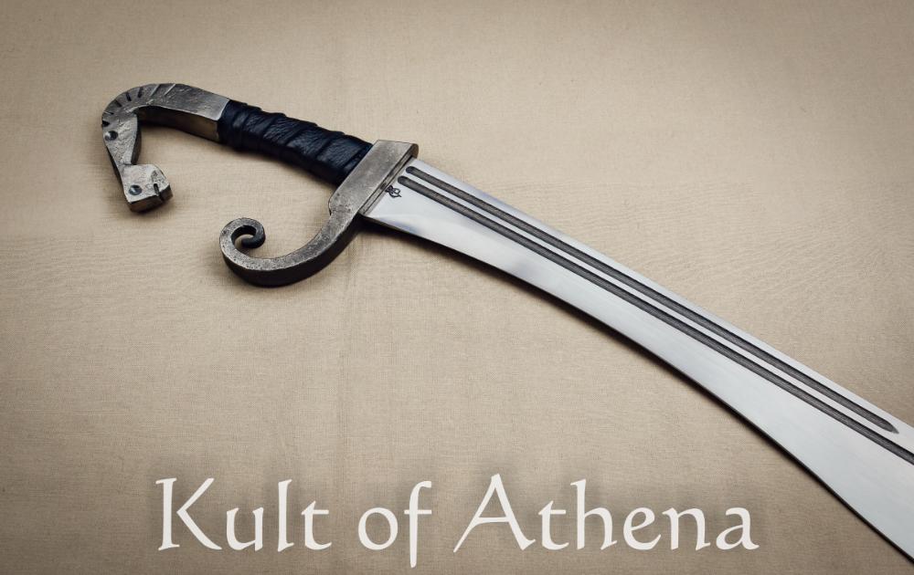 This Horsehead Falcata is a robustly constructed sword built by Baltimore Knife and Sword for stage and sport combat. The blade edges are thick and blunted to resist damage and for safety. The blade is medium carbon alloy steel which is tempered to 48-50 HRc to create a resilient and durable sword capable of withstanding repetitive impact and shock.