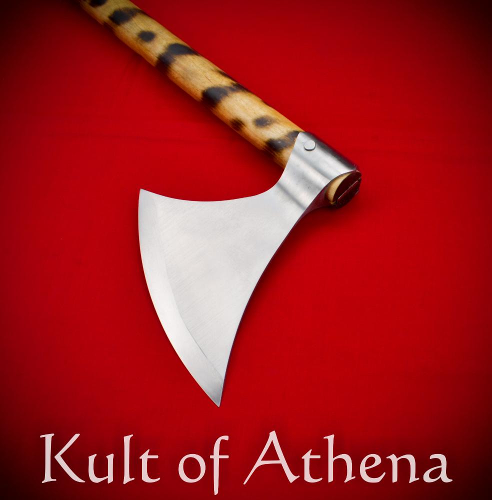 Crafted with care and high standards entirely in the USA by Baltimore Knife & Sword, this Viking axe has a large blade of medium carbon alloy steel which is well tempered to a 48-50 HRc hardness. The axehead is stoutly fitted onto a hardwood haft and with a steel axe wedge for a tight fit within the socket and further reinforced by two pins. The axe is completed with some carefully applied decorative burn markings.