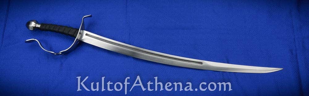 This Privateer Cutlass by Baltimore Knife & Sword was purpose-designed for the rigorous blade-on-blade contact of stage and sport combat. The blade is a medium carbon alloy steel with a finished hardness of 48-50 HRC.