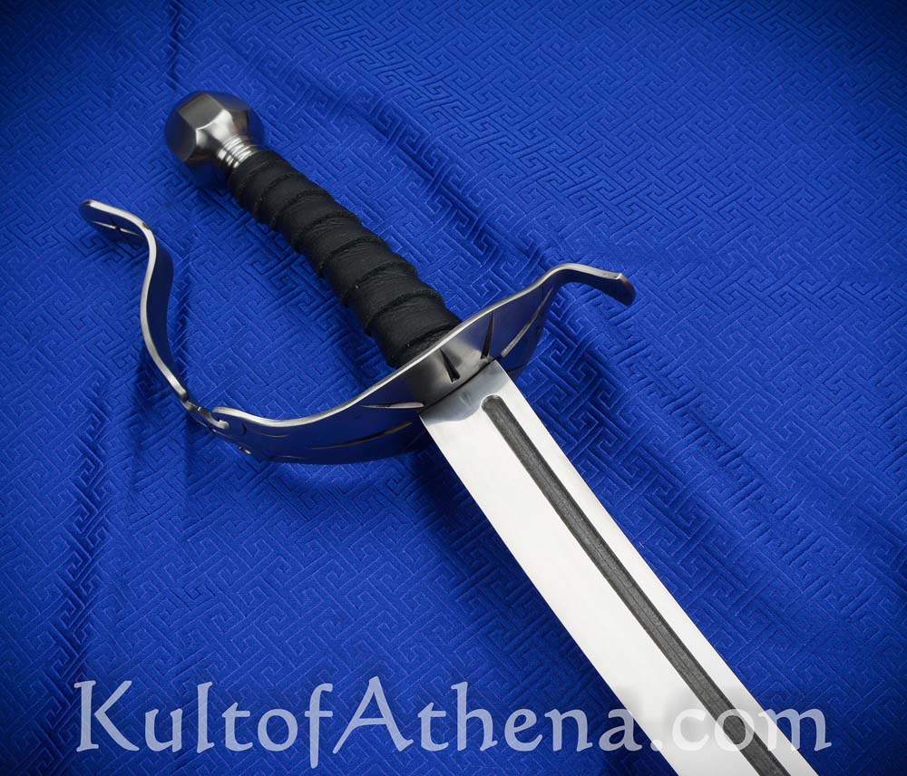 This sword features a lifetime guarantee from Baltimore Knife & Sword. Should the sword break under normal stage combat use then it will be repaired or replaced by the manufacturer. Also – we can blunt the tips to a safer ”penny round” shape upon request. Please contact us for details concerning this additional service.