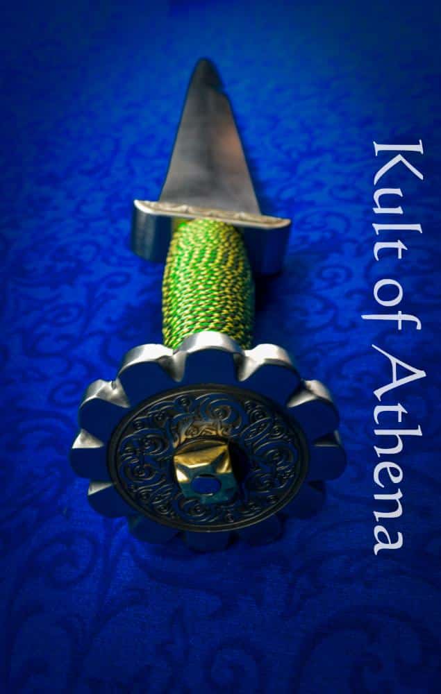 BKS – Scrollwork Etched Dirk with Emerald and Brass Wire Grip