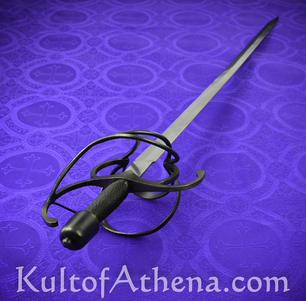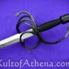 This is well made but heavy and needs some sharpening or grinding. The fit and finish is excellent. It is indeed a hot hammer peened blade according ti traditional methods. It is well made. But it is just heavy. It you have a sharpening wheel you should put a hollow grind on this and it will be great, reducing some unnecessary weight. Historically, yes, rapiers were quite nimble. While of course, the small sword was faster, the rapier itself was also very fast. Don’t listen to people who make clunky modern swords, without reference to the originals, and then make the excuse by saying “ancient rapiers were not fast, but“ they’re just saying that so you won’t blame them for their product. This is tip heavy and needs a lot of material removal. I would advise a long-term regimen of wheel polishing and sharpening and in time it will balance out. Also I ground the area of the cross and guard that you normally wrap your finger around. Because it was too angular and sharp on my skin. I smoothed it down so it is more comfortable to grasp. Other than that, no problems aside from it being blunt. Make sure to hollow grind sharpen it!