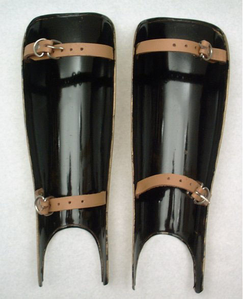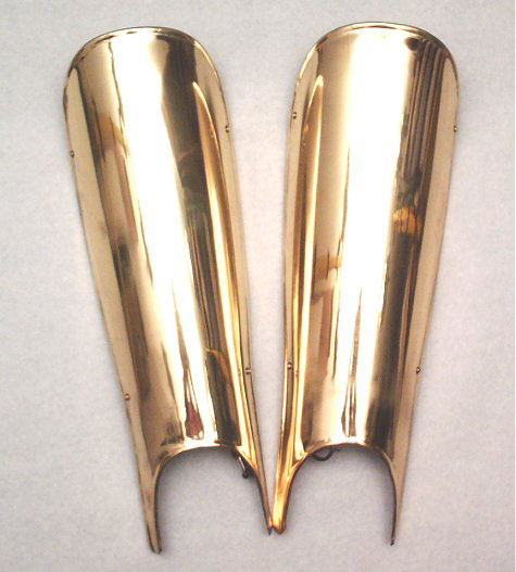 Terrific Greaves I am extremely pleased with my purchase of these brass greaves. They are of a truly heavy brass and very well made. The leather straps are quite substantial and more than adequate for the job. These greaves are comfortable to wear and look great.