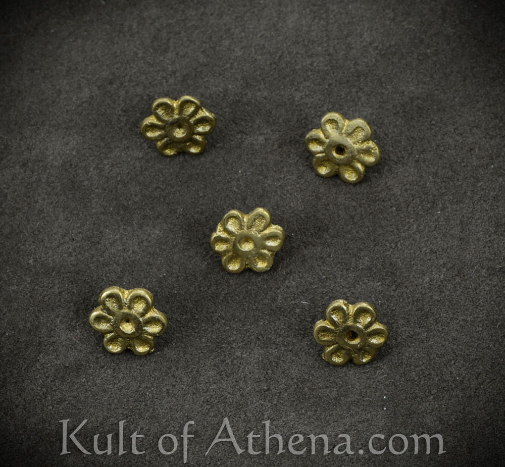 This set of five Medieval Rosette studs are cast in brass. These conchos are ready to be fitted to your leatherwork or armor project.