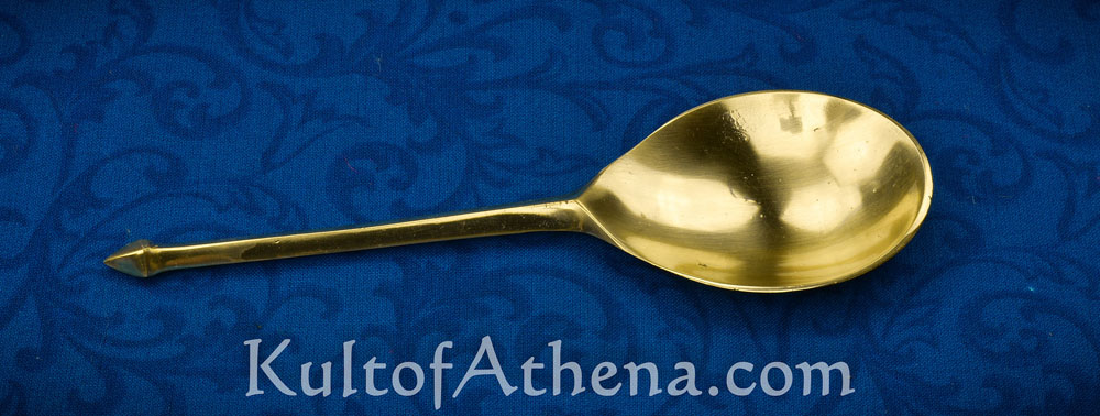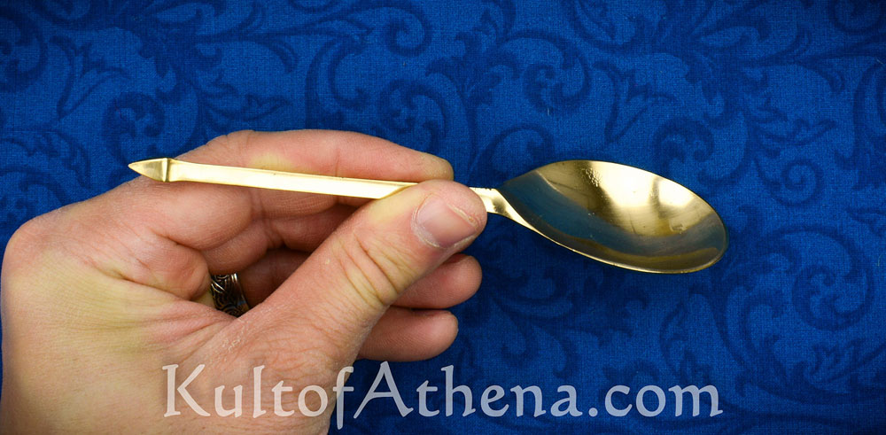 This spoon is crafted in the Medieval fashion and is made entirely from solid brass.