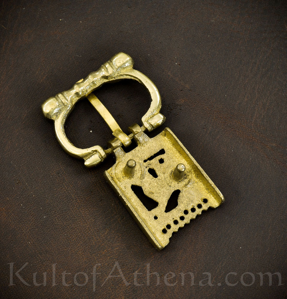 Great buckle I’m not sure why this is listed as a new item as I purchased one some time ago. I will enthusiastically state that it is a terrific buckle. I tapered a leather strap to fit nicely into it and riveted it with no difficulty at all. I also purchased a chape that is a wonderful companion piece and used it complete an excellent belt. This is a great piece that looks fantastic.