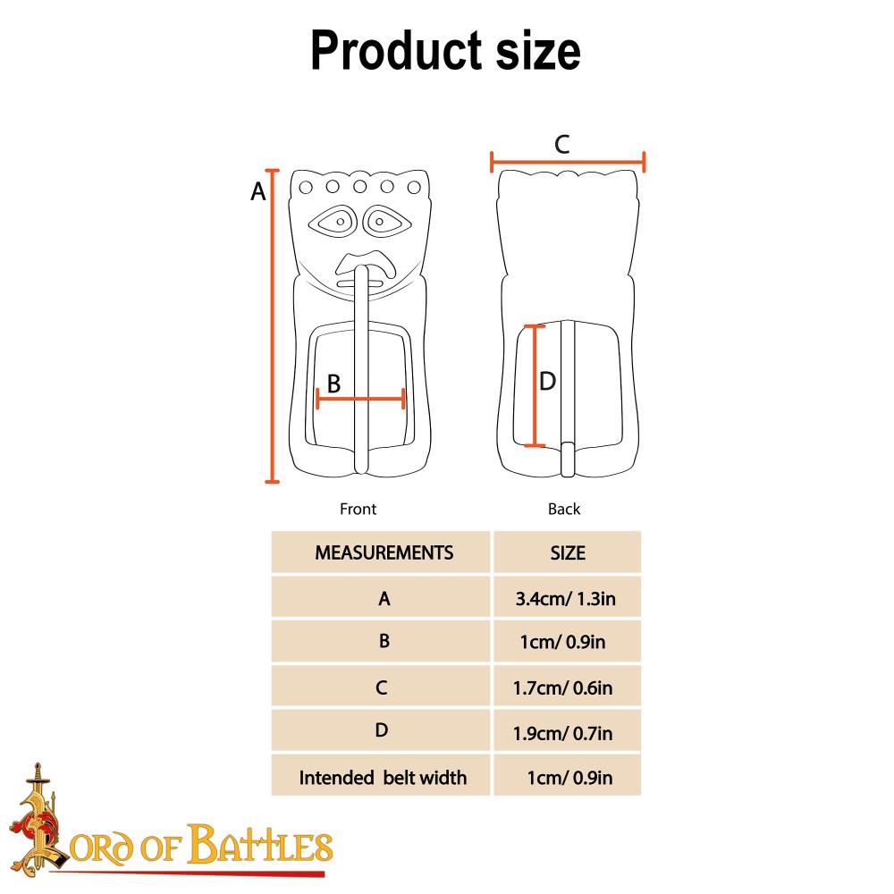 The length measurement has been taken along the horizontal axis of the buckle or along the flat edge of a D-ring buckle. Fits a 5/8” inch wide belt or strip of leather.