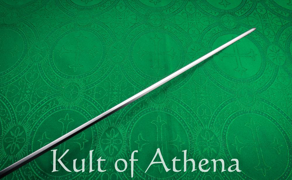 The 40″ blade boasts a narrow diamond distal taper with a very tall spine, thus making them rigid and robust enough to hold their own with conventionally weighted rapiers and side swords. While rigid, this blade is a true F3 flex and can parry with decent presence in spite of the light mass.