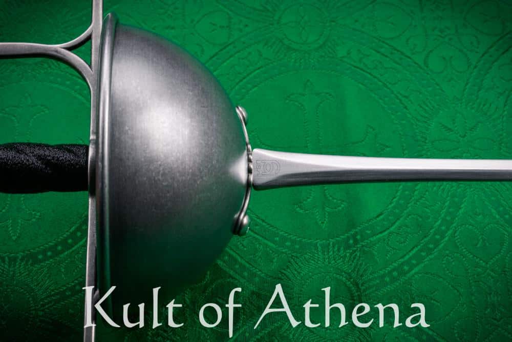 A couple of years ago Sam at Castille Armory was able to examine a matched set of mid to late 17th century dueling rapiers. Wickedly needle sharp from the last 12″ of the tip, these were light and balanced specifically for nimble tip work making these rapiers a joy to hold. Castille’s version that came from that study of period originals that can be considered the lightest sparring late renaissance rapier on the market today. At under 2 lbs (like the originals) with a 5 inch point of balance, these move quickly and effortlessly without feeling the least bit floppy.