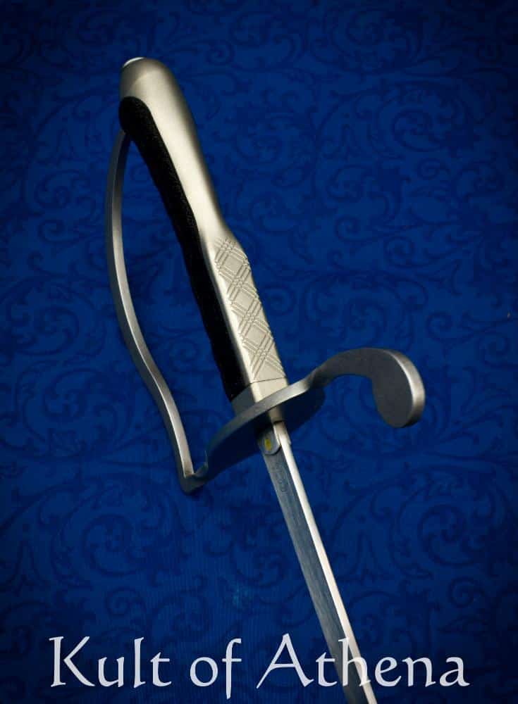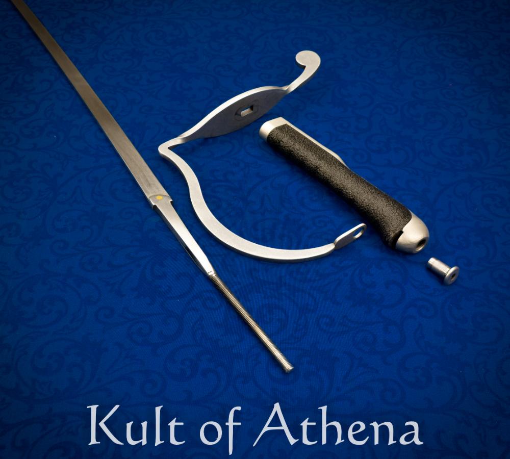 The guard is made from high strength 100 grade alloy steel and offers a great deal of space for heavy gloved hands including SPES style gloves. This sabre offers a choice of robust specially contoured black PLA grip or our dueling sabre back strap system with a large and small profile grip insert. It is all held together by a recessed m6 threaded pin. It can be disassembled as needed for replacement of components or modularity as desired.