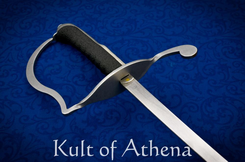 The Castille economy sabre is based on the 19th and 20th century light cavalry sabres that boasted the “stirrup” style guards. This inexpensive simulator while being light with a total weight of just 570 grams, provides plenty of blade presence. The superbly well tempered blade is a robust flat ground version of our 16 mm Dueling blade at 34” F3 and has a proper Radaelli curve. The rounded blade edge has a minimum of 3mm thickness and a 3mm thick rounded tip. Made entirely in the USA, the high quality 5160 spring steel for the blade is sourced from USA mills and certified for quality.