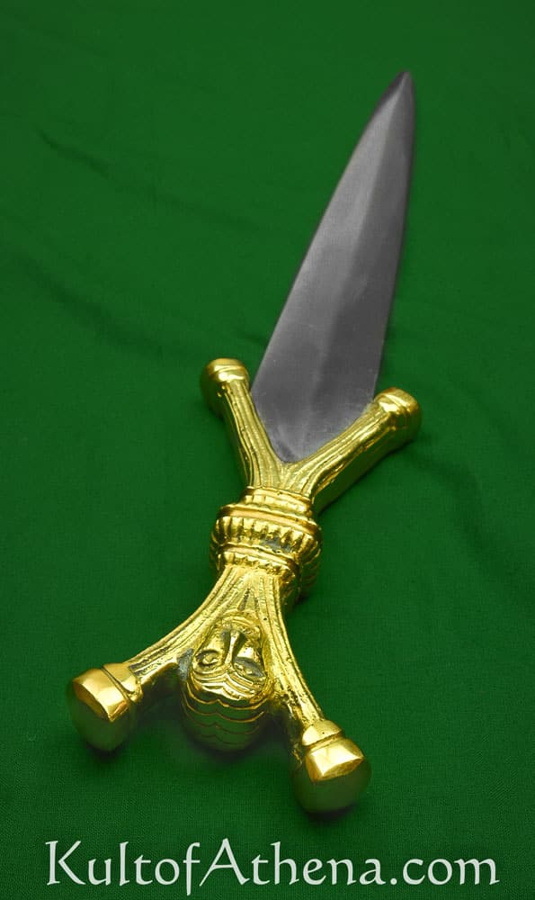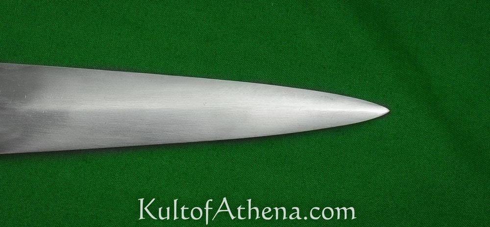 Excellent Dagger! Keep in mind that this is my first purchase on this site, and in addition this is my first blade that I have purchased, so you might want to take this with or without a grain of salt. Looking at such a specimen, I must say that this is a rather beautiful design. It is simple in nature, but very pleasing to the eye. The handle feels right and fits the hand nicely. If I had something to complain about, it’s that I have a feeling that this blade might not have a completely sturdy fix on its handle. It’s not that it’s brittle, but I would not recommend it for extreme abuse. Still this is an excellent prop for medieval fairs, and a great showpiece.