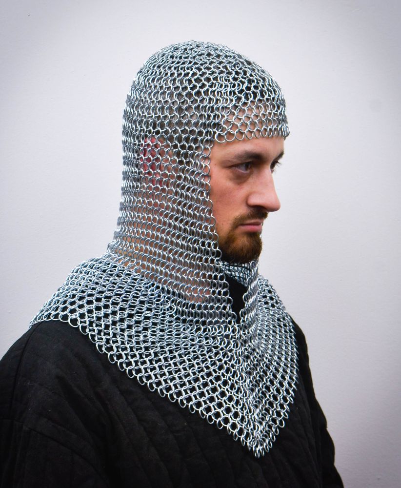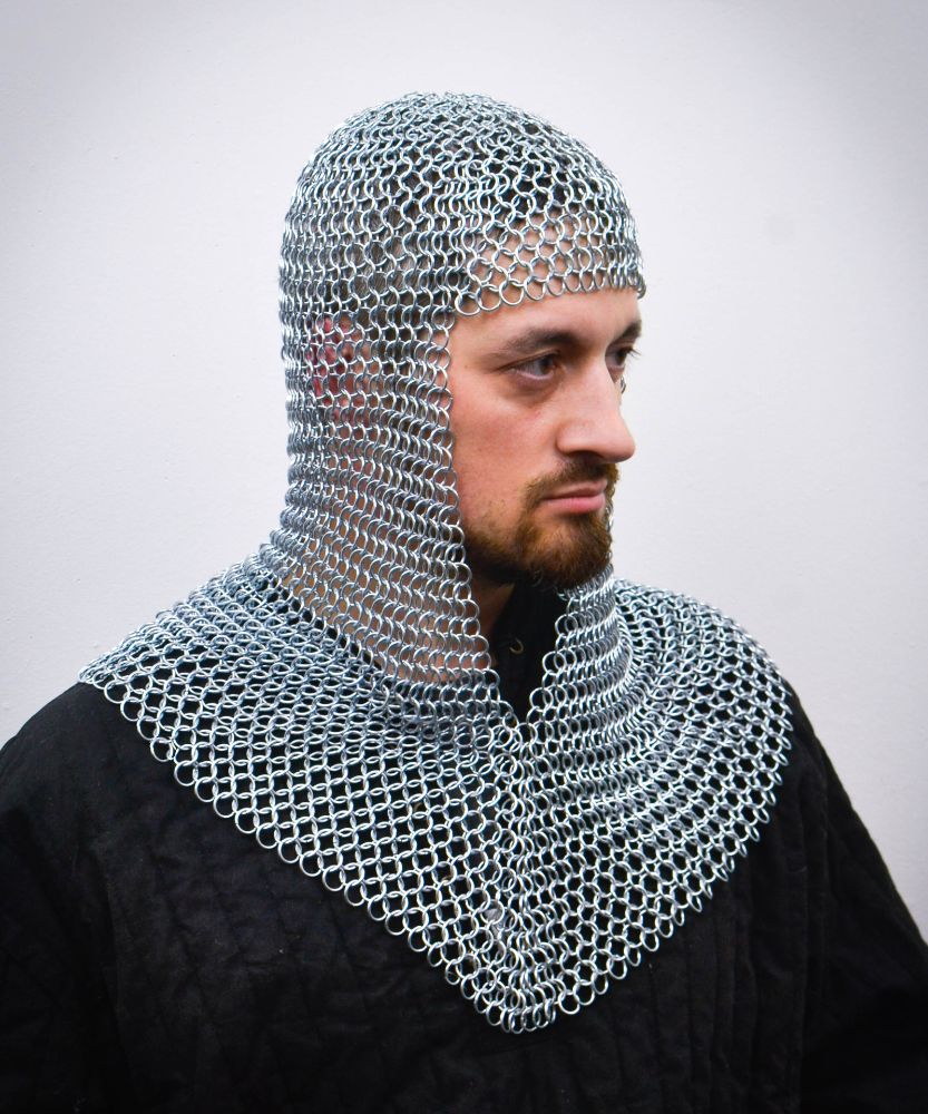 Chainmail Coif – Butted Round Rings – Zinc Coated – Lord of Battles