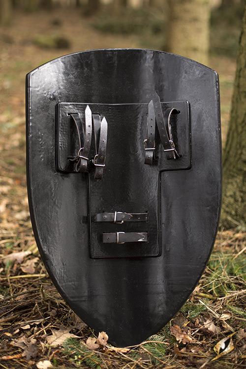 Epic Armourys Checkered Shield is a semi-curved, kite-shield inspired by 10th to 12th century Normans. Finished with a beautifully detailed laser-cut heraldry pattern, this shield will fit perfectly in the hands of an infantryman or knight. The rest of the shield is handmade and painted, designed to look like a lacquered shield with a metal rim.