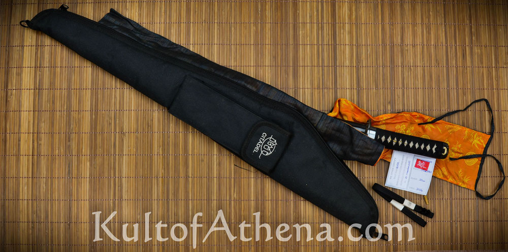 Included with the sword is a cloth sword bag, as well as a well-padded storage and transportation sword bag with a tough nylon exterior and side storage pocket. A small cloth bag in the side pocket holds a stamped production certificate from the forge which certifies the manufacture date of the sword – It can be found in the side pocket of the bag along with its other accessories. Though a high quality sword on its own, this Wakizashi makes a fine companion to the Citadel Lotus Katana for a matched Daisho.