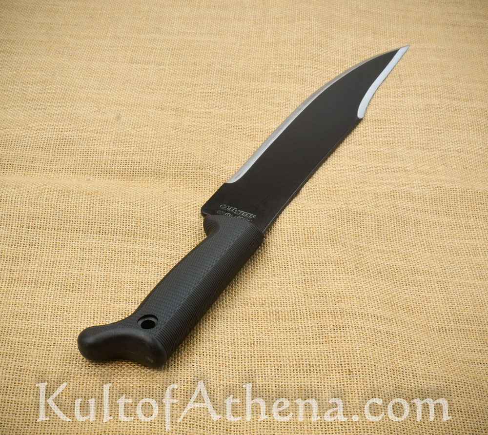 The Cold Steel Bowie Machete is a light and fast chopper with an acutely tapered puncturing tip; a handy and affordable fighting blade. The blade is durable 1055 high carbon steel with a sharpened false edge and a black matte baked-on rust resistant coating. The grip is practical and robust impact polypropylene with a pre-drilled hole that accommodates your own lanyard.