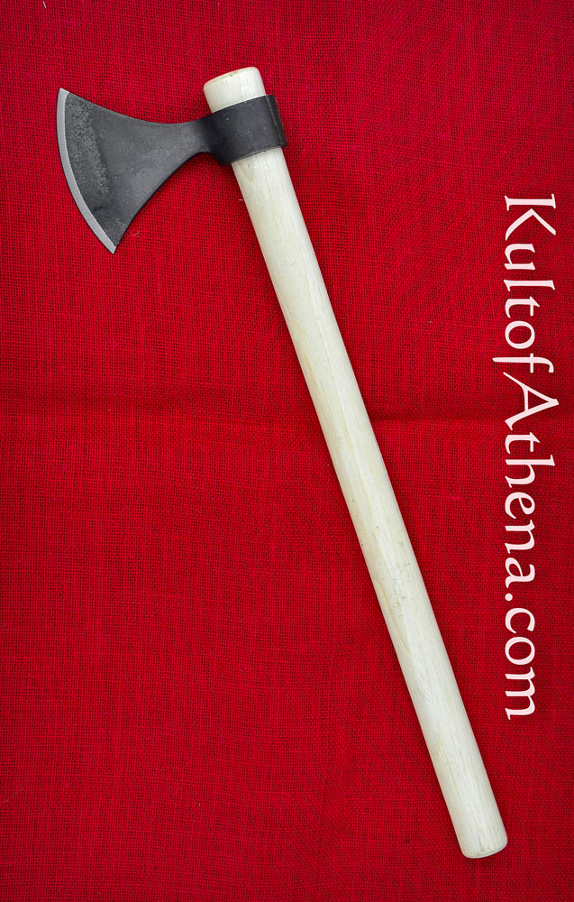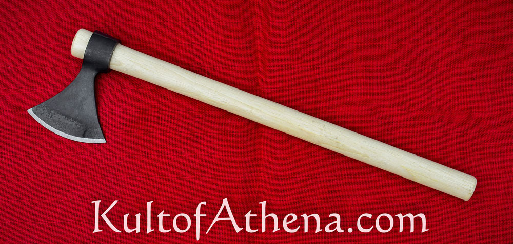 Greatly made drop forged, sharp as hell powerful too Great handling axe when thrown or as a one handed war axe
